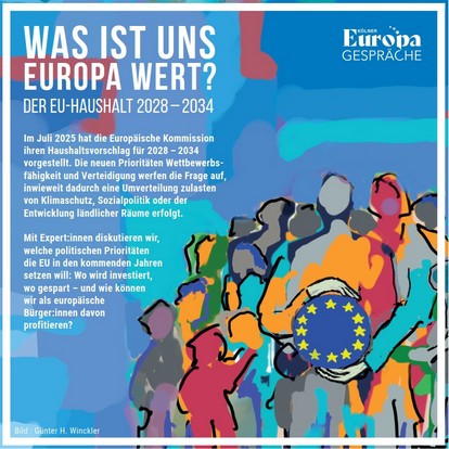 Im Juli 2025 hat die Europäische Kommission ihren Haushaltsvorschlag für 2028–2034 vorgestellt. Die neuen Prioritäten Wettbewerbsfähigkeit und Verteidigung werfen die Frage auf, inwieweit dadurch eine Umverteilung zulasten von Klimaschutz, Sozialpolitik oder der Entwicklung ländlicher Räume erfolgt. Mit Expert:innen diskutieren wir, welche politischen Prioritäten die EU in den kommenden Jahren setzen will: Wo wird investiert, wo gespart – und wie können wir als europäische Bürger:innen davon profitieren?